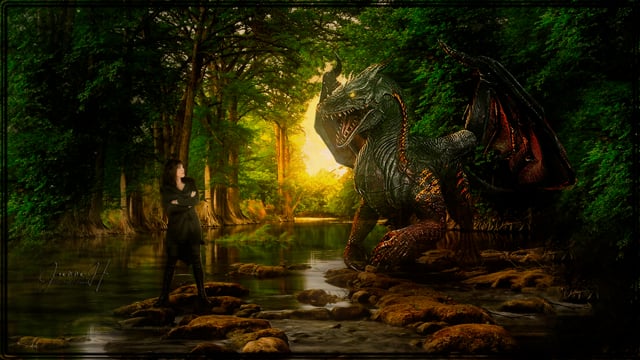 Photo composites, featuring myself, edited into fantasy scenes, full of dragons, gryphons and other mythical creatures. I’m a warrior here and these are my tales…